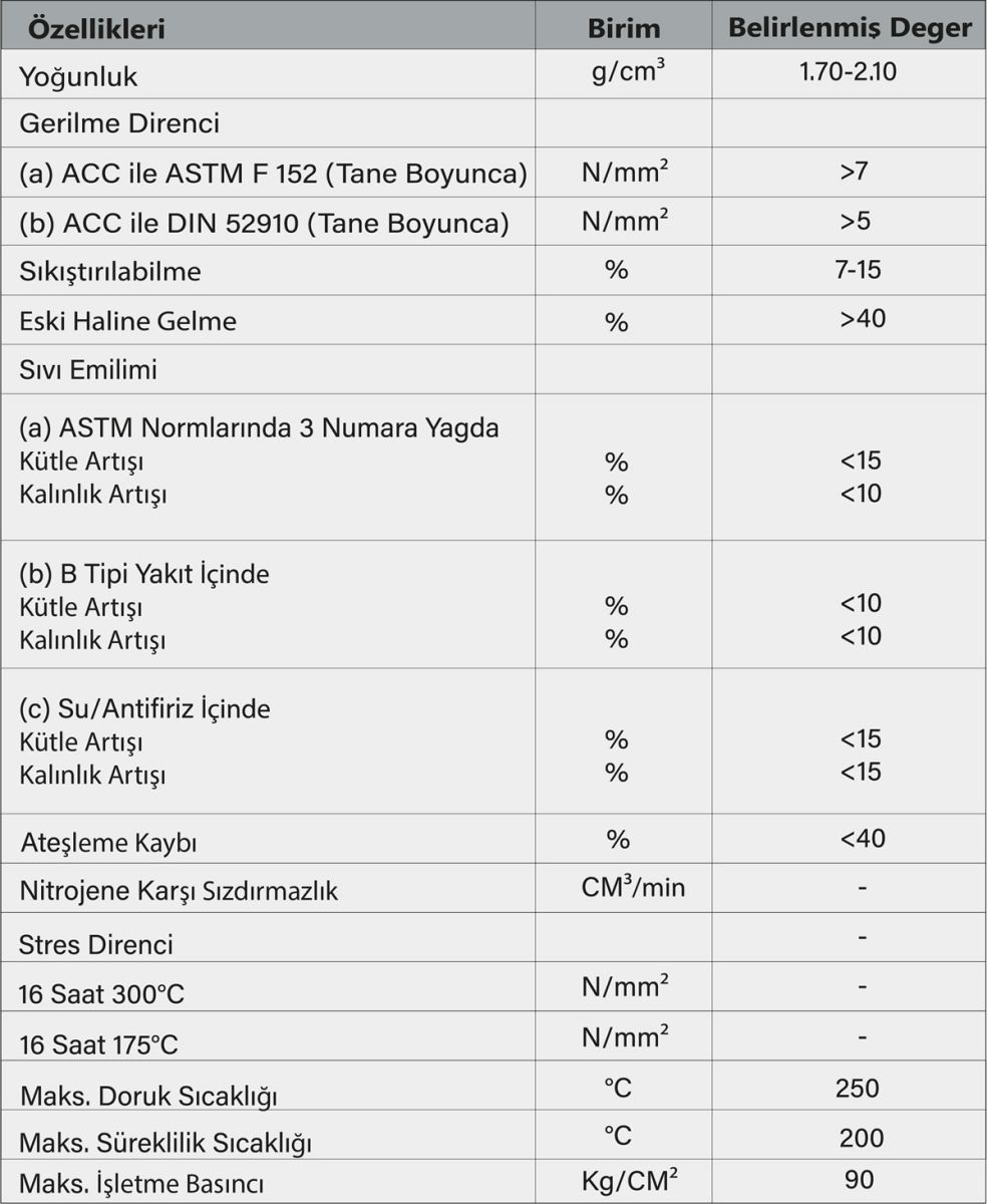 Selüloz Elyaf, Orantılı Ölçüde İçinde Metal İhtiva Eden NBR(kauçuk) & Organik Elyaf, Su/ Yağ Geçirmezliği.