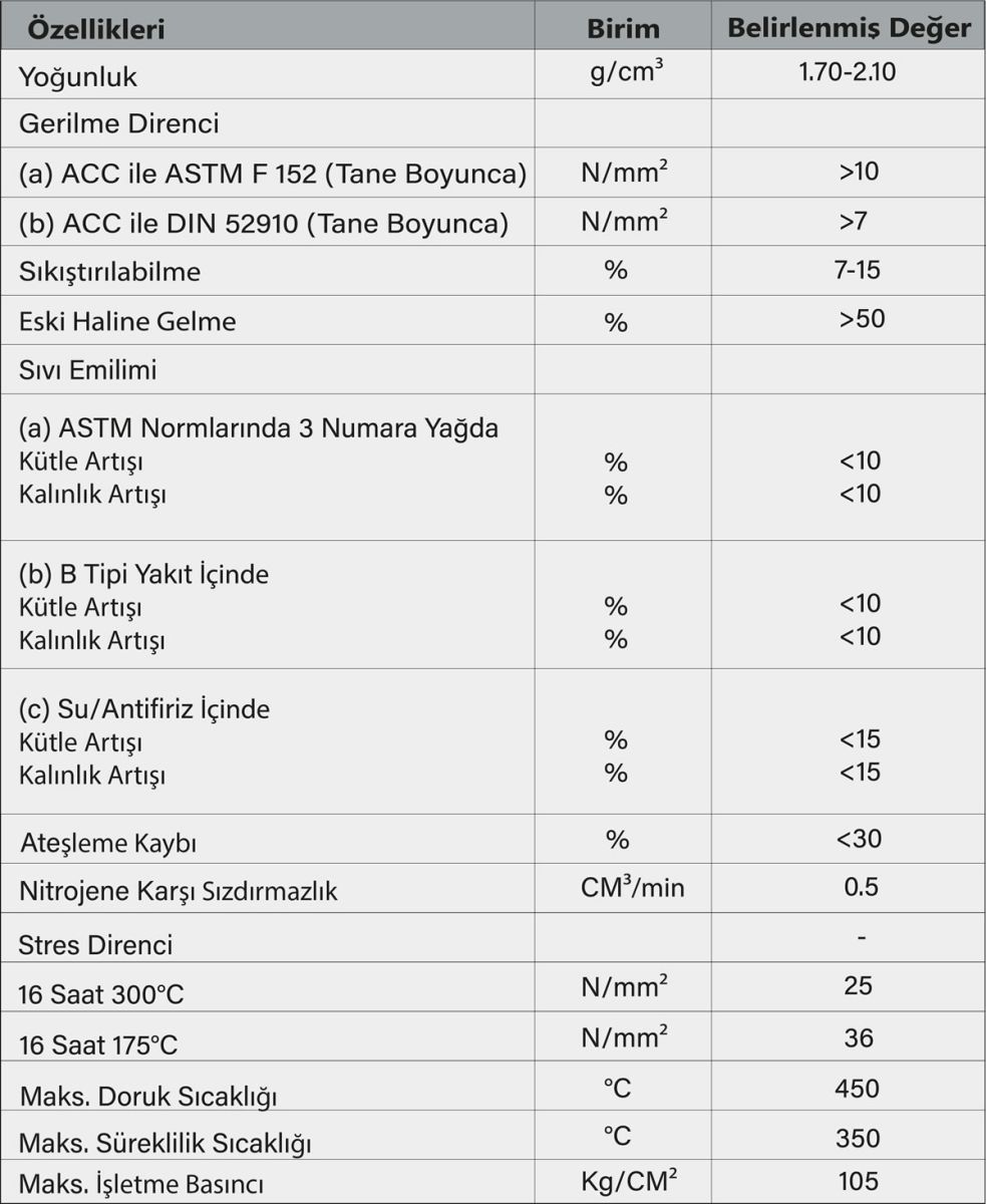 Orantılı Ölçüde İçinde Metal İhtiva Eden Aramid Elyaf, Mineral Elyaf ve NBR(kauçuk), Su/Yağ Geçirmezliği.
