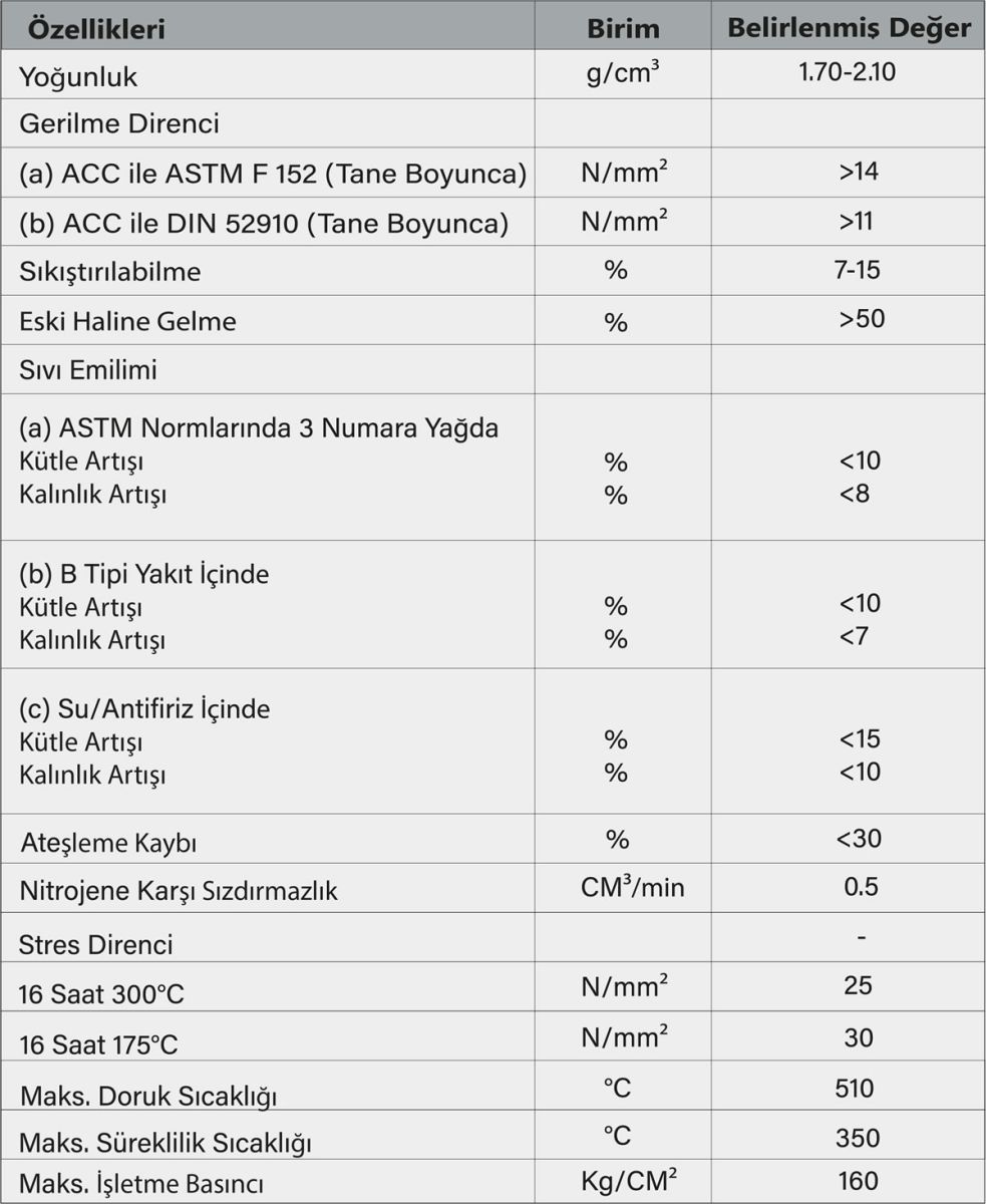 Orantılı Ölçüde İçinde Metal İhtiva Eden Aramid Elyaf, Mineral Elyaf ve NBR(kauçuk), Yüksek Performanslı Yağ Geçirmezliği, Mükemmel Termal, Kimyasal & Mekanik Özelliklere Sahip.