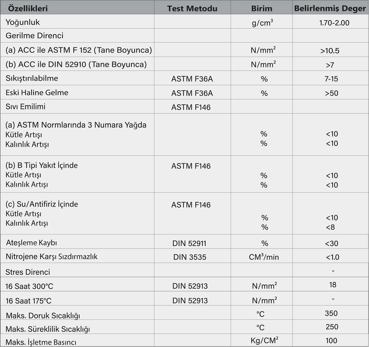 Aramid Elyaf, Mineral Elyaf, NBR(kauçuk), Su/Yağ Geçirmezlik Özelliği.
