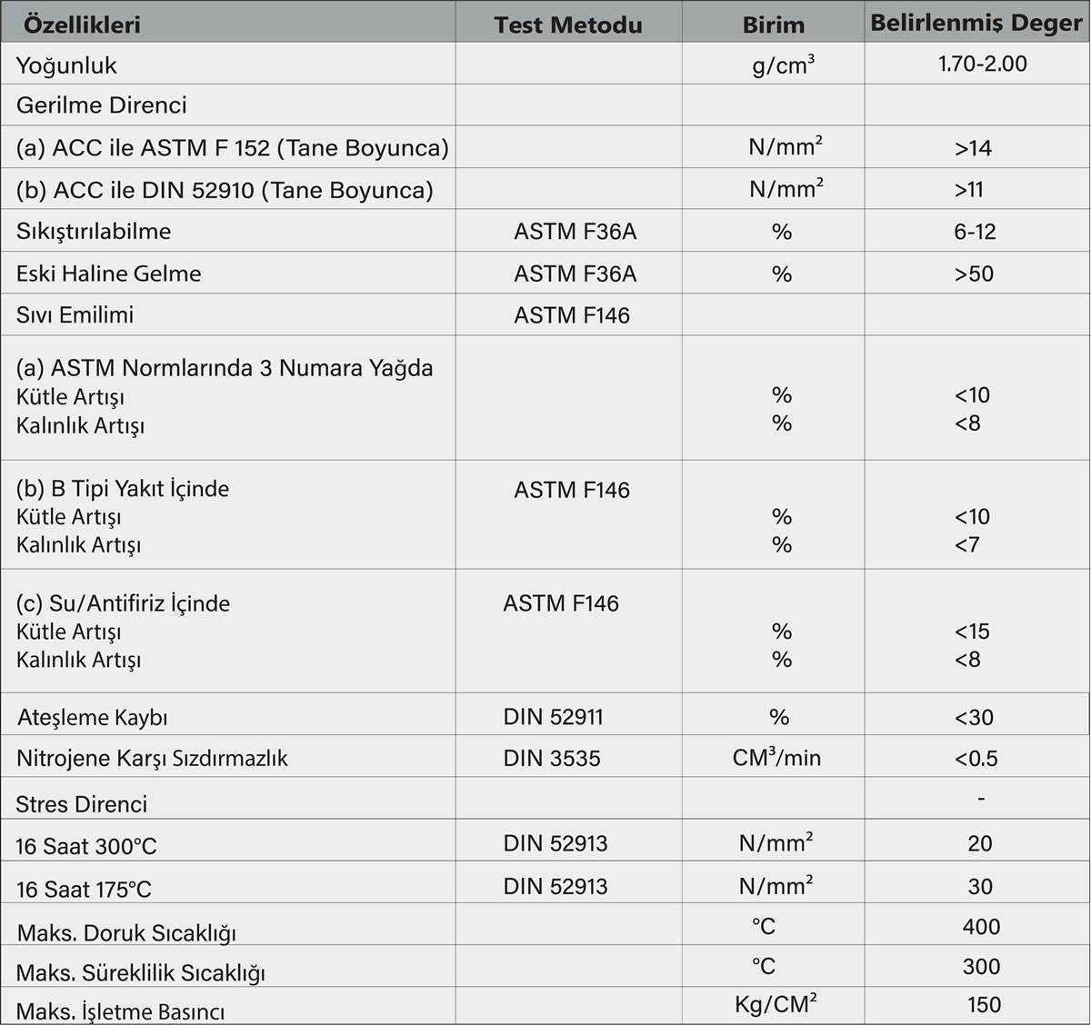 Aramid Elyaf, Mineral Elyaf, NBR(kauçuk), Yüksek Performanslı Yağ Geçirmezlik Özelliği.